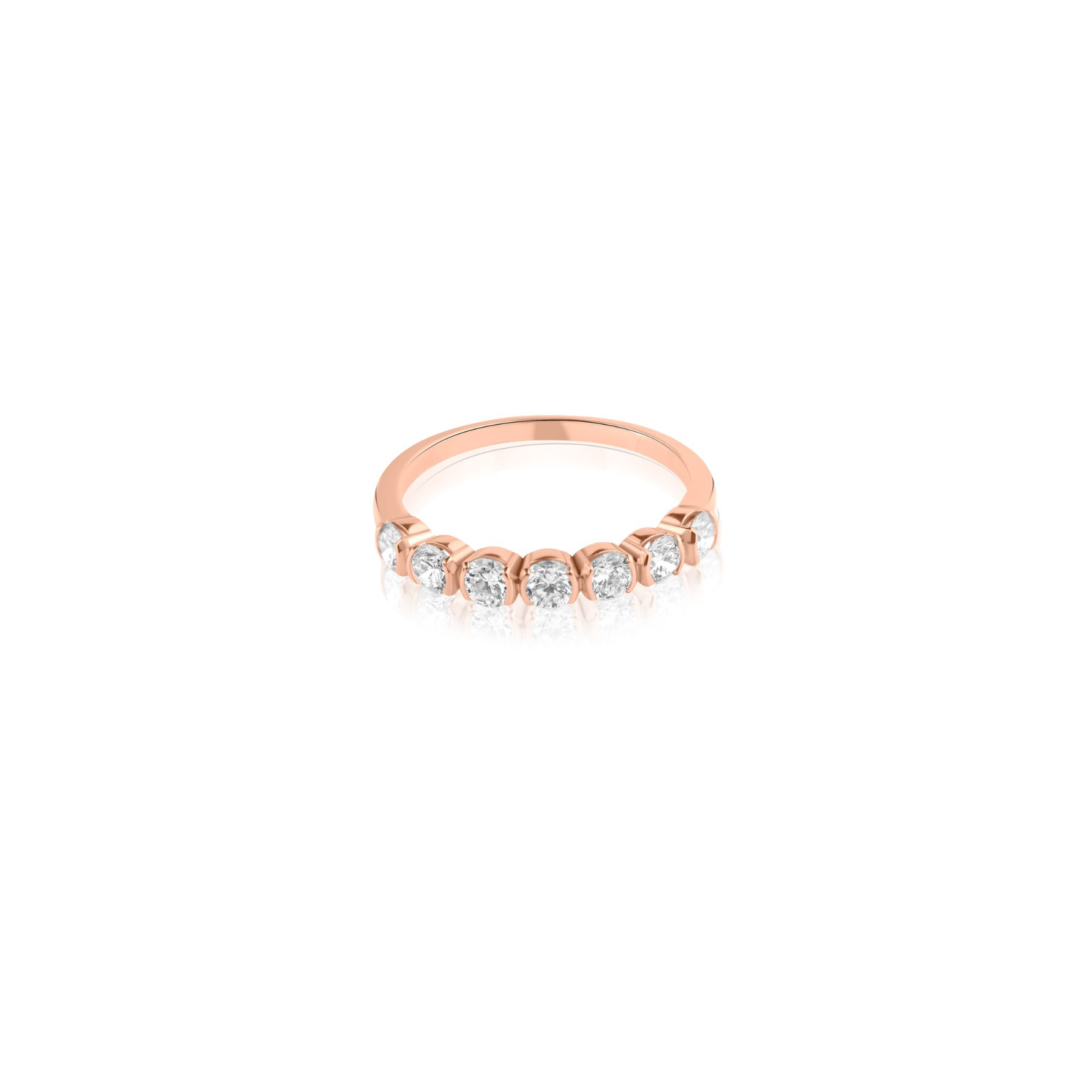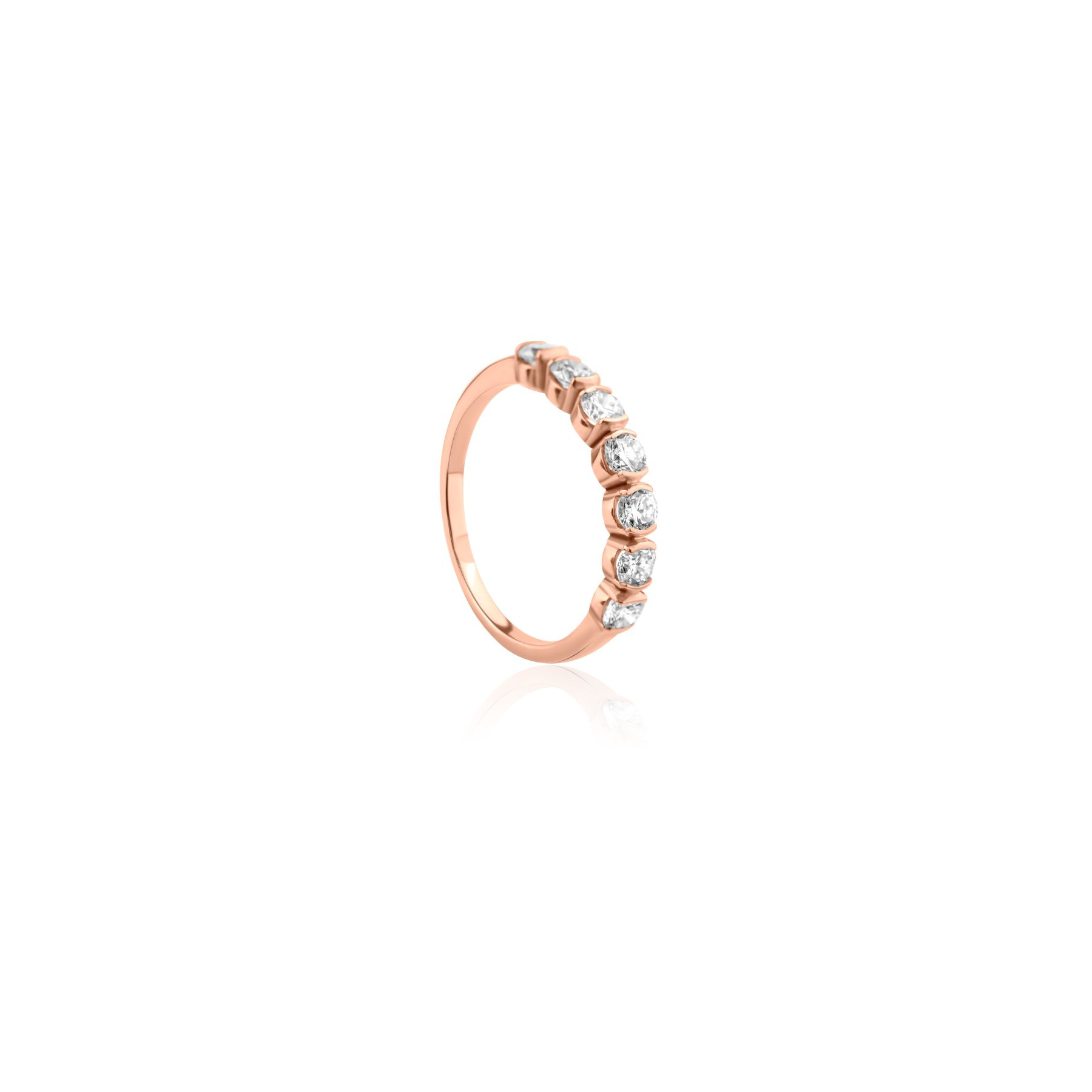 Cette demi alliance en Or rose 750/1000 est un bijou d'exception, parfait pour accompagner un moment précieux, tel qu'une demande en mariage ou un engagement. Serti demi-clos de 7 diamants taille brillant G/VS1 pour un poids total de 0,77 ct, elle révèle une beauté subtile et une brillance incomparable.