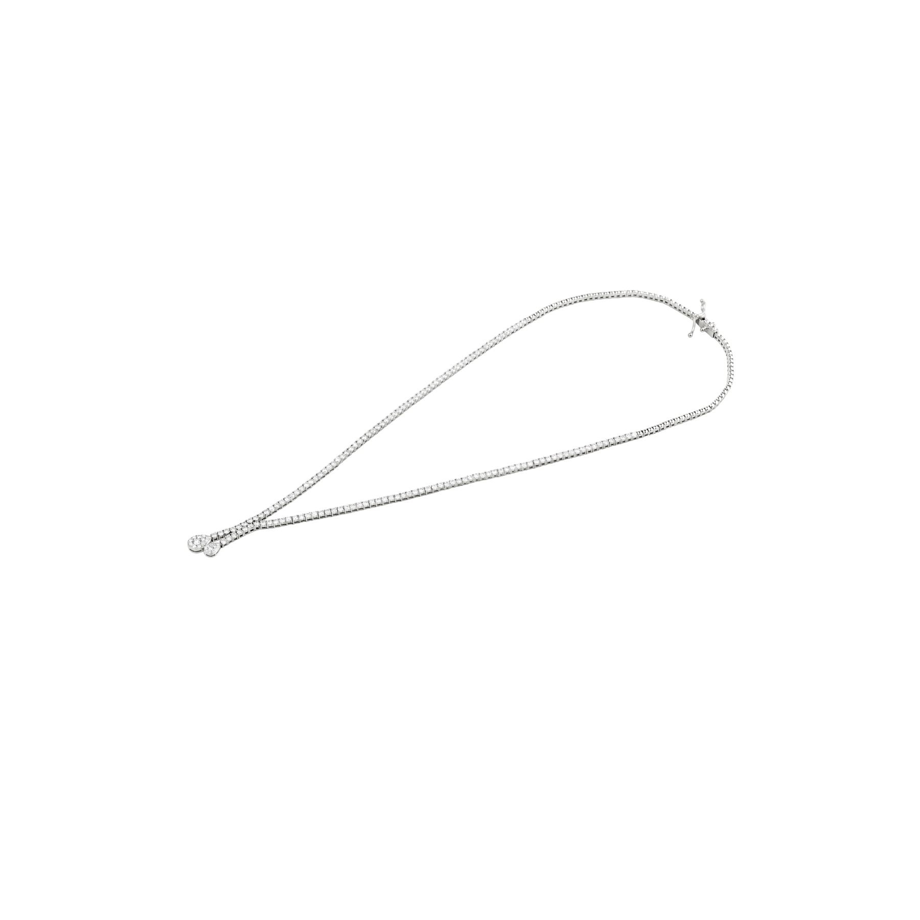 Chaque diamant est minutieusement serti afin d’assurer un maintien optimal tout en conservant la fluidité caractéristique des colliers rivière. Ce collier or gris épouse parfaitement le cou, offrant une silhouette élancée et raffinée. Il peut sublimer une robe de soirée comme rehausser une tenue plus sobre grâce à son éclat discret mais puissant.