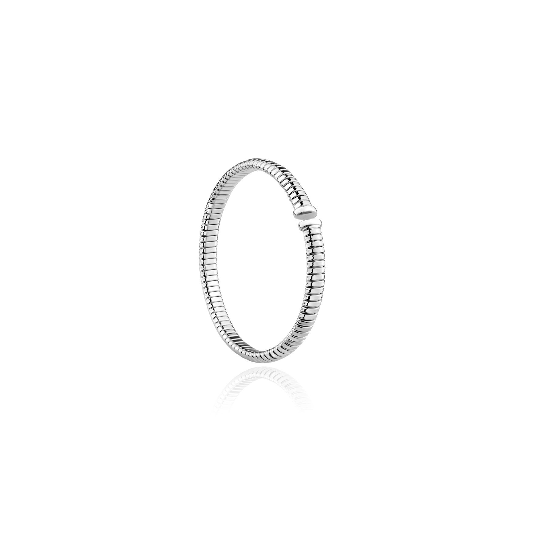 Bracelet spirale aplatie en Or gris 750/1000. Largeur du bracelet 6,10 mm. Diamètre 53 x 45 mm.