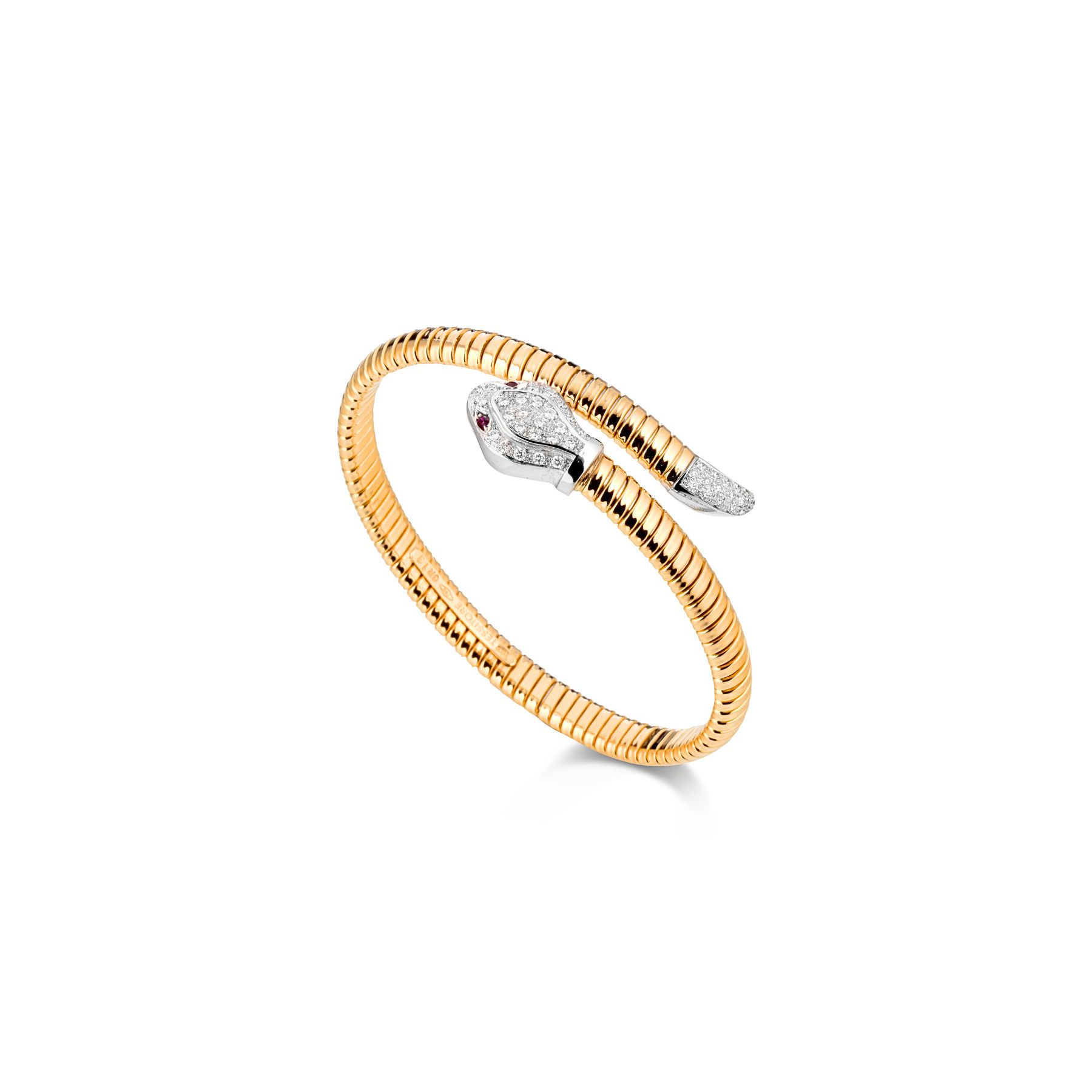 Le Bracelet Excellence Or jaune 750/1000 est une pièce de joaillerie d’exception qui allie élégance et sophistication. Son design en spirale aplatie lui confère une allure unique et moderne, sublimée par l’éclat de ses pierres précieuses. Sertis avec soin, les diamants taille brillant totalisent 0,41 ct, apportant une luminosité inégalée à ce bracelet en or jaune. Deux rubis taille brillant de 0,05 ct viennent compléter ce chef-d’œuvre, ajoutant une touche de couleur et de raffinement.