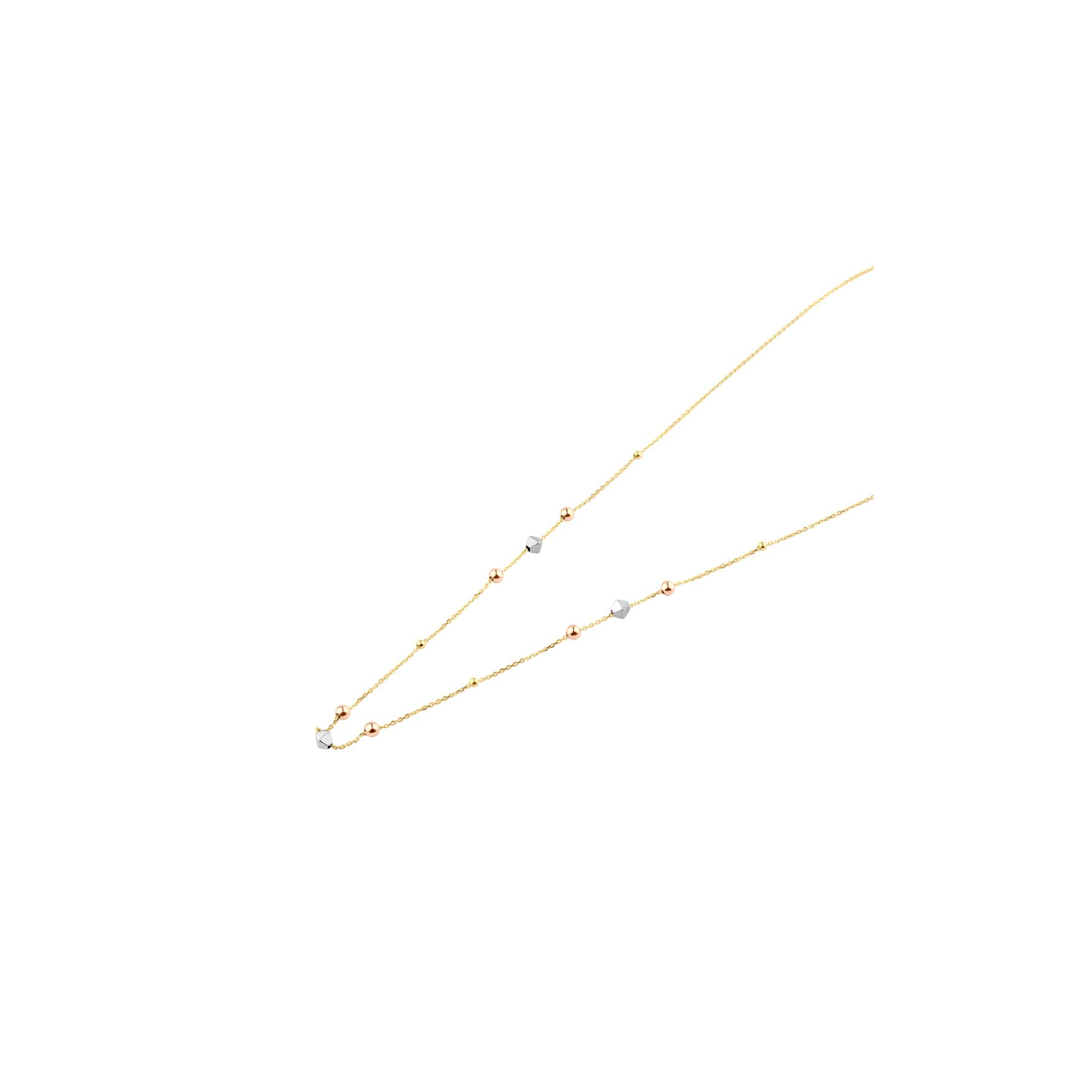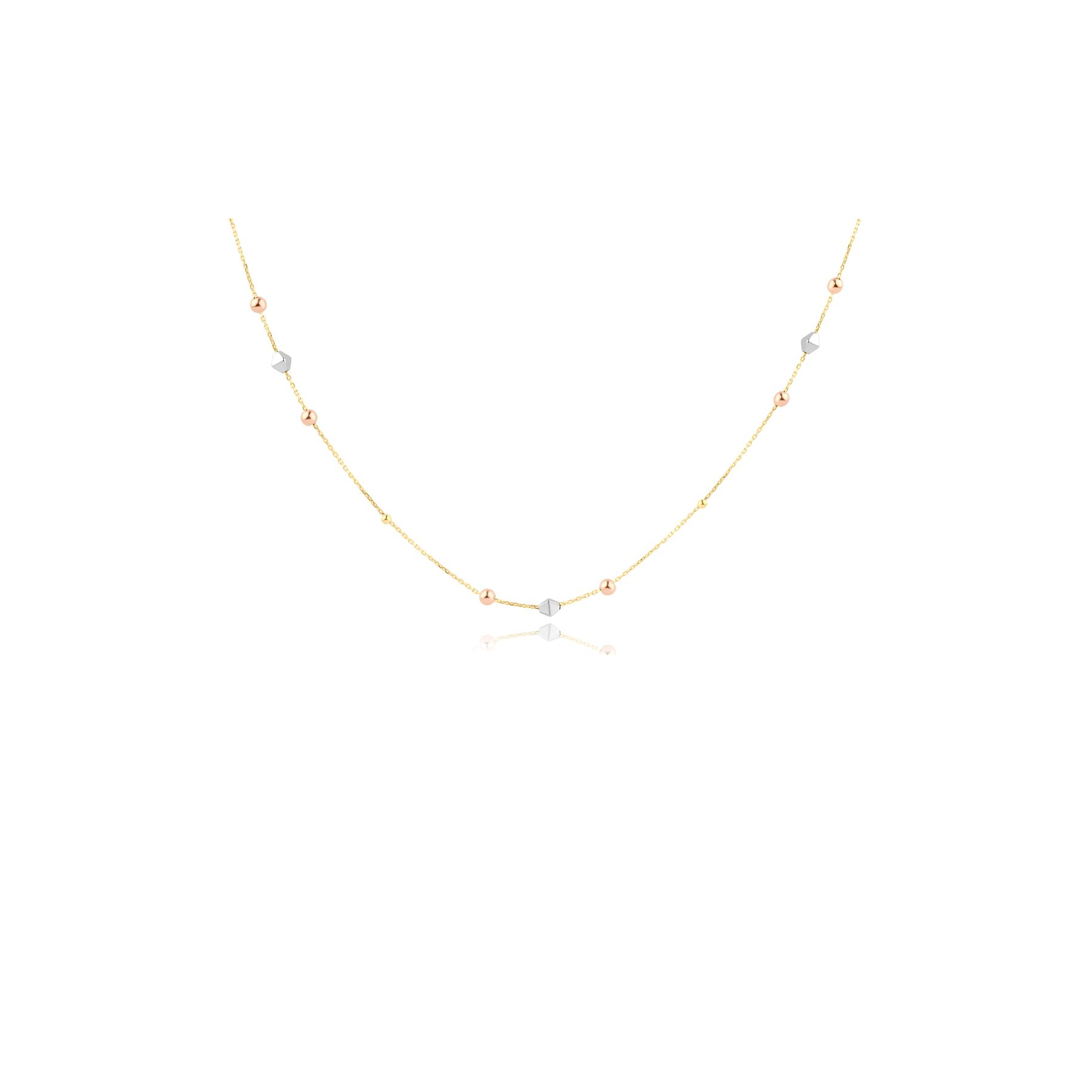 Le Collier Excellence Or tricolore 750/1000 de la collection Cubic est un bijou sophistiqué qui marie l'élégance à l'originalité. Ce collier se distingue par sa composition en or tricolore, une fusion parfaite de trois teintes d'or qui apportent profondeur et luminosité à chaque élément du collier.