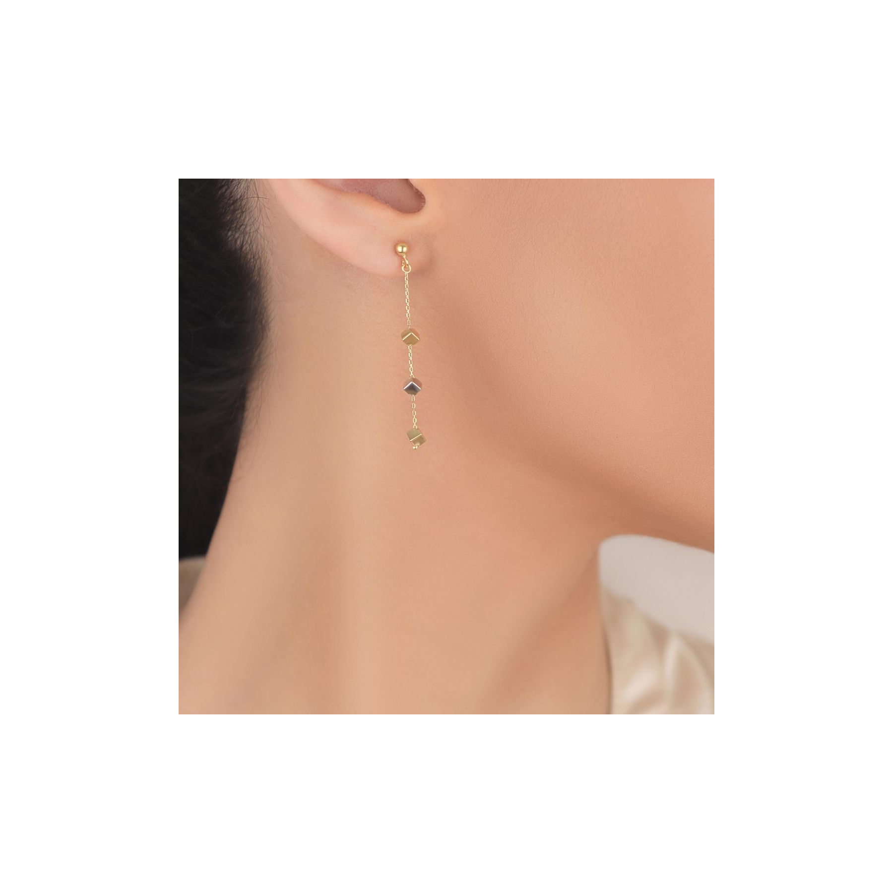 La chaîne, longue de 45 mm, permet un mouvement fluide et gracieux au porté. Elle prolonge la silhouette avec légèreté, ajoutant une touche de finesse tout en mettant en valeur le visage. Ces boucles pendantes design sont pensées pour les femmes qui recherchent un bijou aussi original qu’élégant, adapté aussi bien à une tenue quotidienne qu’à une occasion plus habillée.