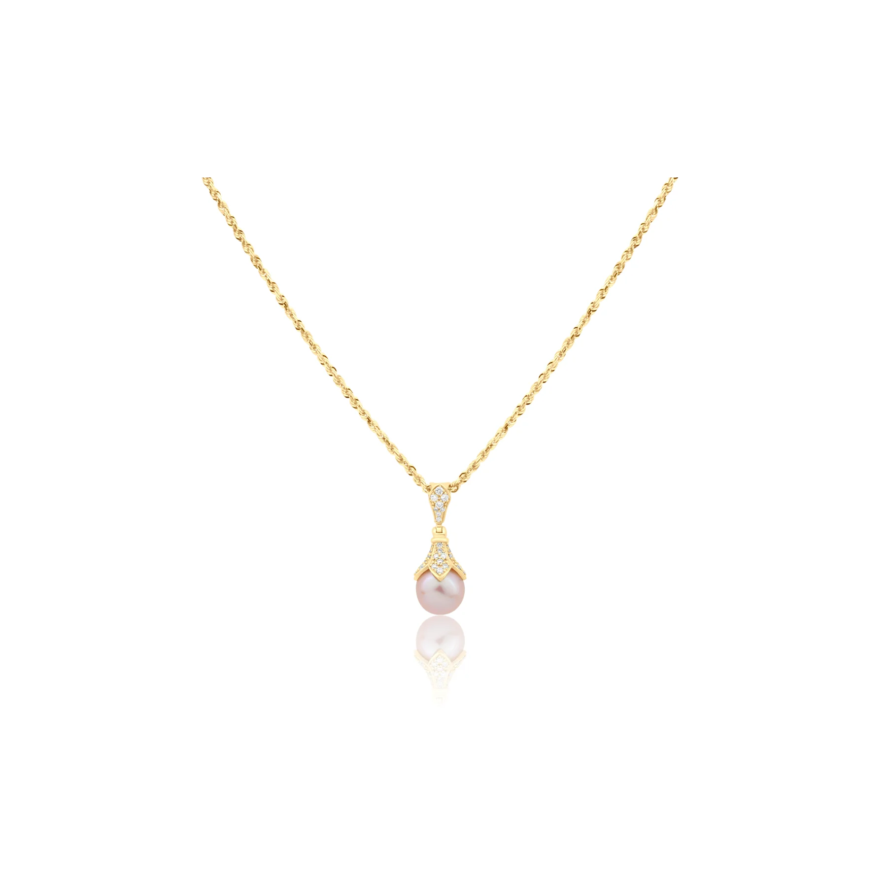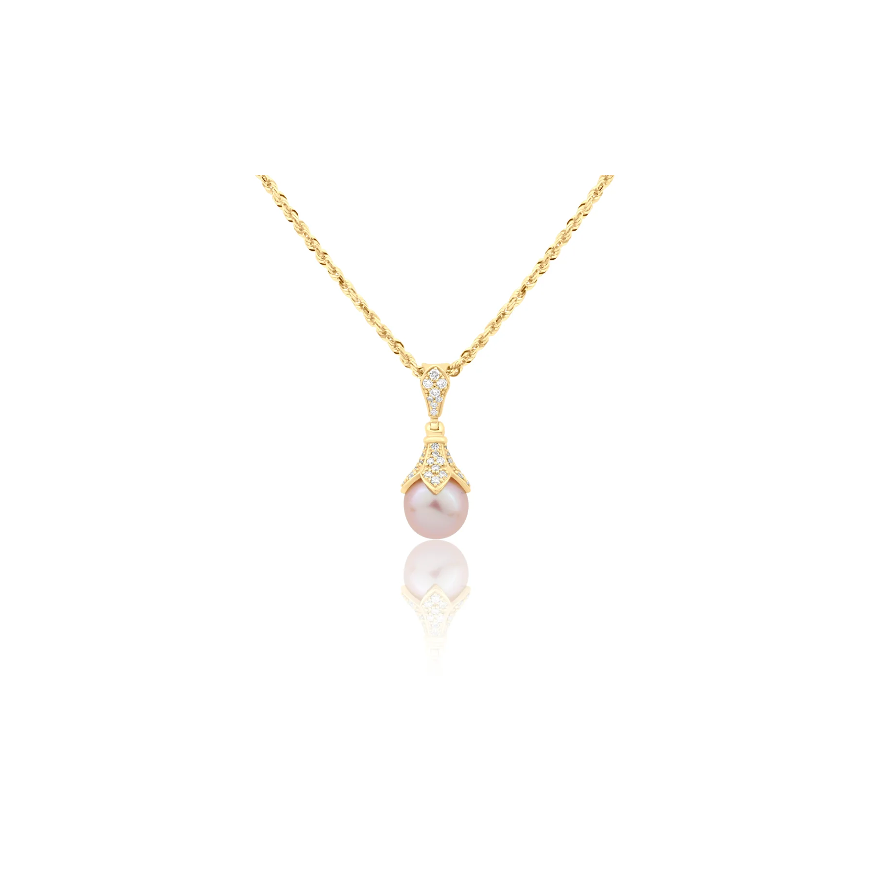 Ce bijou exceptionnel est orné de 32 diamants taille brillant, pour un total de 0,31 carat. Chaque diamant est soigneusement serti afin de maximiser sa brillance et d’apporter une lumière délicate à l’ensemble. Le centre du pendentif est sublimé par une perle de culture d’eau douce de 8 mm de diamètre, qui confère à la pièce une touche de pureté et d’élégance intemporelle.