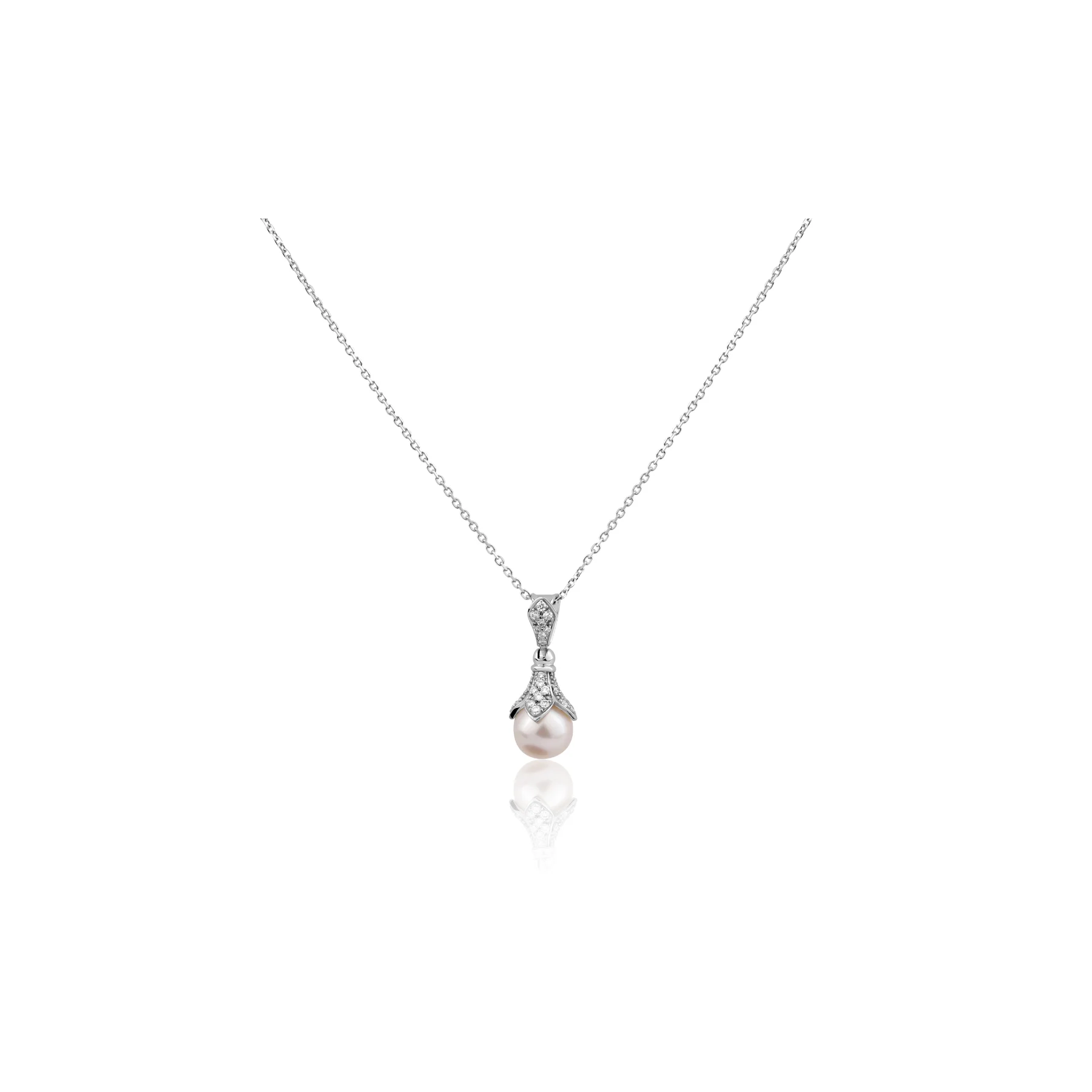 Au cœur du pendentif se trouve une perle de culture d’eau douce, au diamètre généreux de 11 mm. Sa teinte nacrée, parfaitement assortie au métal précieux, offre un contraste délicat avec l’éclat des diamants, renforçant ainsi l’harmonie du design.