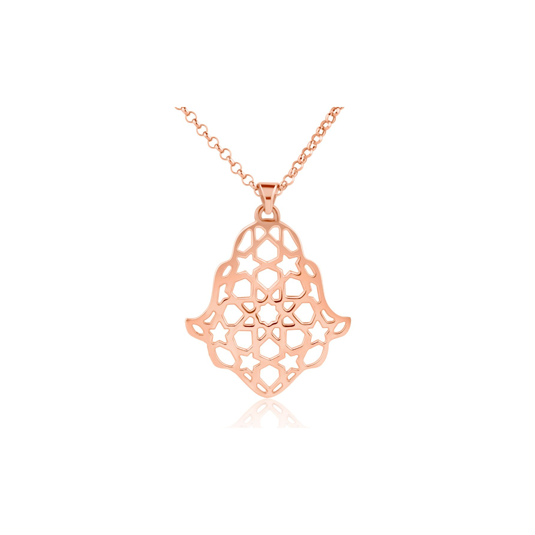 Ce pendentif or rose séduit par son éclat chaleureux et sa symbolique forte. Il est parfait pour celles et ceux qui souhaitent porter un bijou motif zellige à la fois élégant, authentique et significatif. Il peut également constituer un cadeau attentionné, porteur de protection et de beauté.