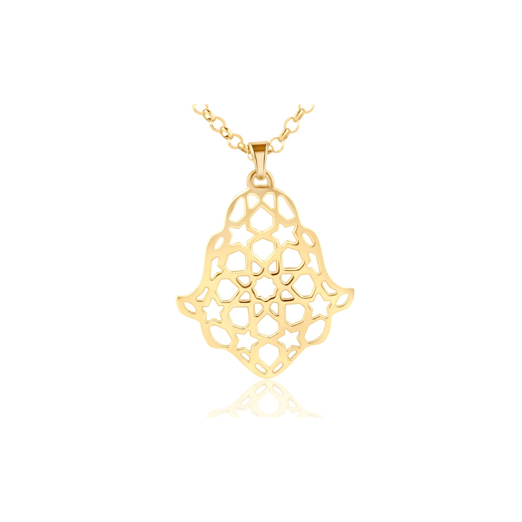 Ce pendentif motif zellige est bien plus qu’un simple accessoire : il est porteur de sens. Symbole universel de protection, la Khmissa représente la force, la paix et la bénédiction. Associée à l’or jaune, elle devient un bijou à la fois précieux et chargé d’émotion.