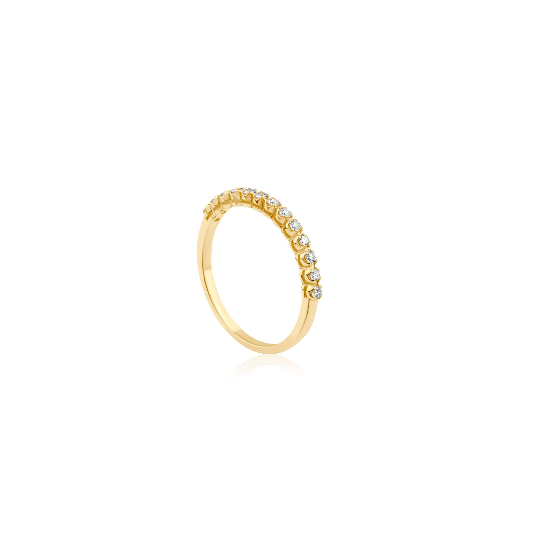 Optez pour l'élégance intemporelle avec cette magnifique demi alliance en or 18k, un bijou d'exception qui allie finesse et éclat. Confectionnée avec précision, cette bague est sertie de 13 diamants taille brillant pour un total de 0,19 ct, offrant un scintillement incomparable à votre main.