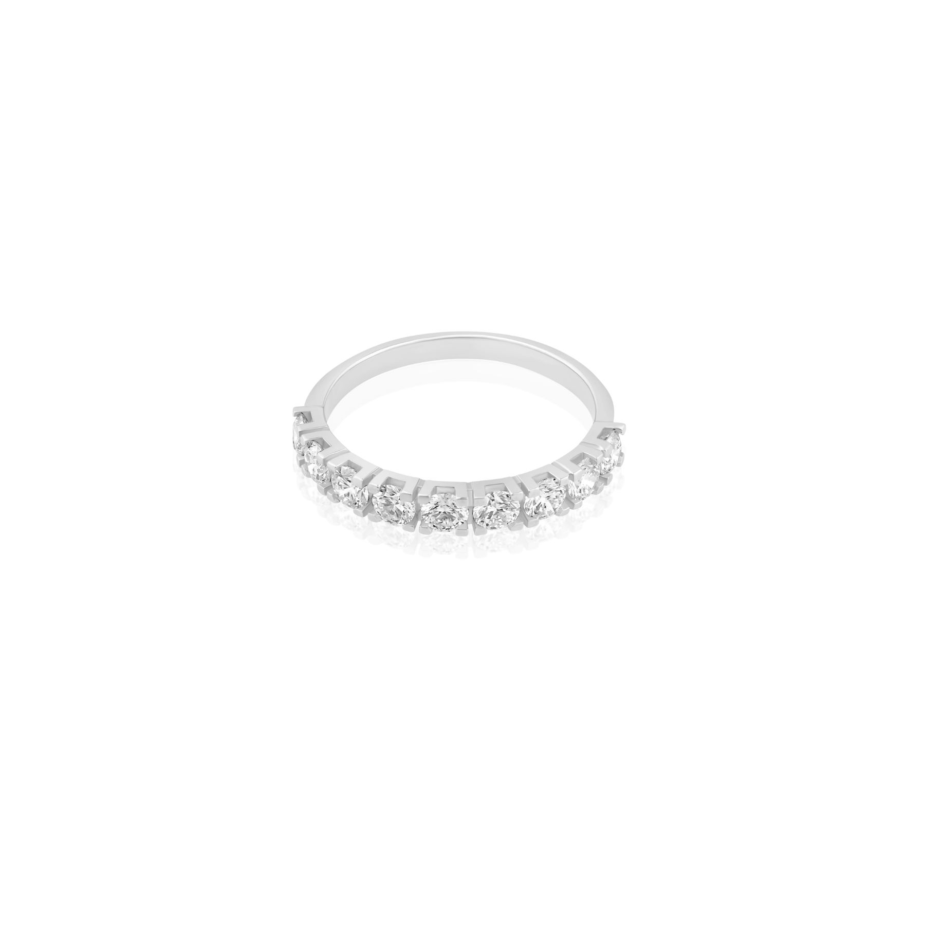 Découvrez notre demi alliance en or 18k, un bijou raffiné qui allie élégance et brillance. Cette demi alliance est sertie de 9 diamants taille brillant pour un total de 0,99 ct, offrant un éclat subtil et intemporel. Idéale comme alliance de mariage, elle apportera une touche sophistiquée à votre grand jour. L'or 18k de haute qualité et les diamants parfaitement sélectionnés font de cette demi alliance un choix incontournable pour les femmes à la recherche d'une alliance délicate et moderne.