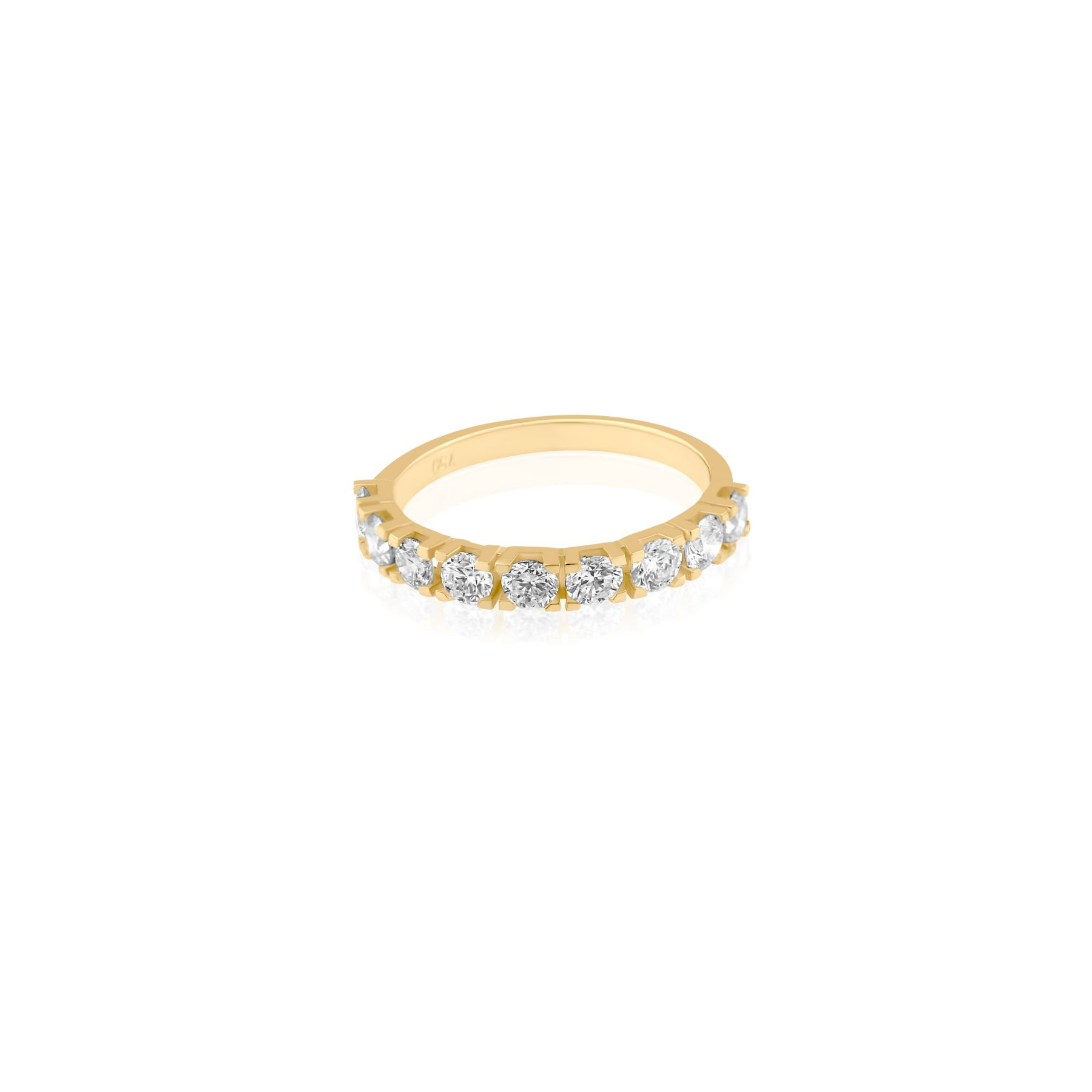 La demi alliance en Or 18k est l'accessoire parfait pour compléter votre engagement. Fabriquée en or jaune 750/1000, cette demi alliance est sertie de 9 diamants taille brillant, totalisant 0,99 ct. Son design épuré et raffiné fait de cette alliance une pièce incontournable pour toute femme en quête de beauté et de sophistication.