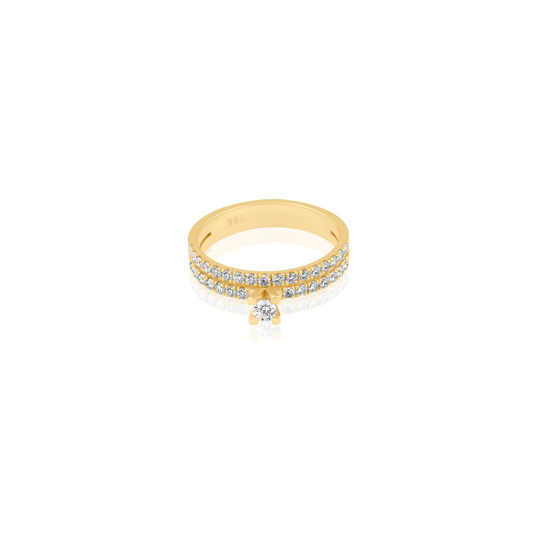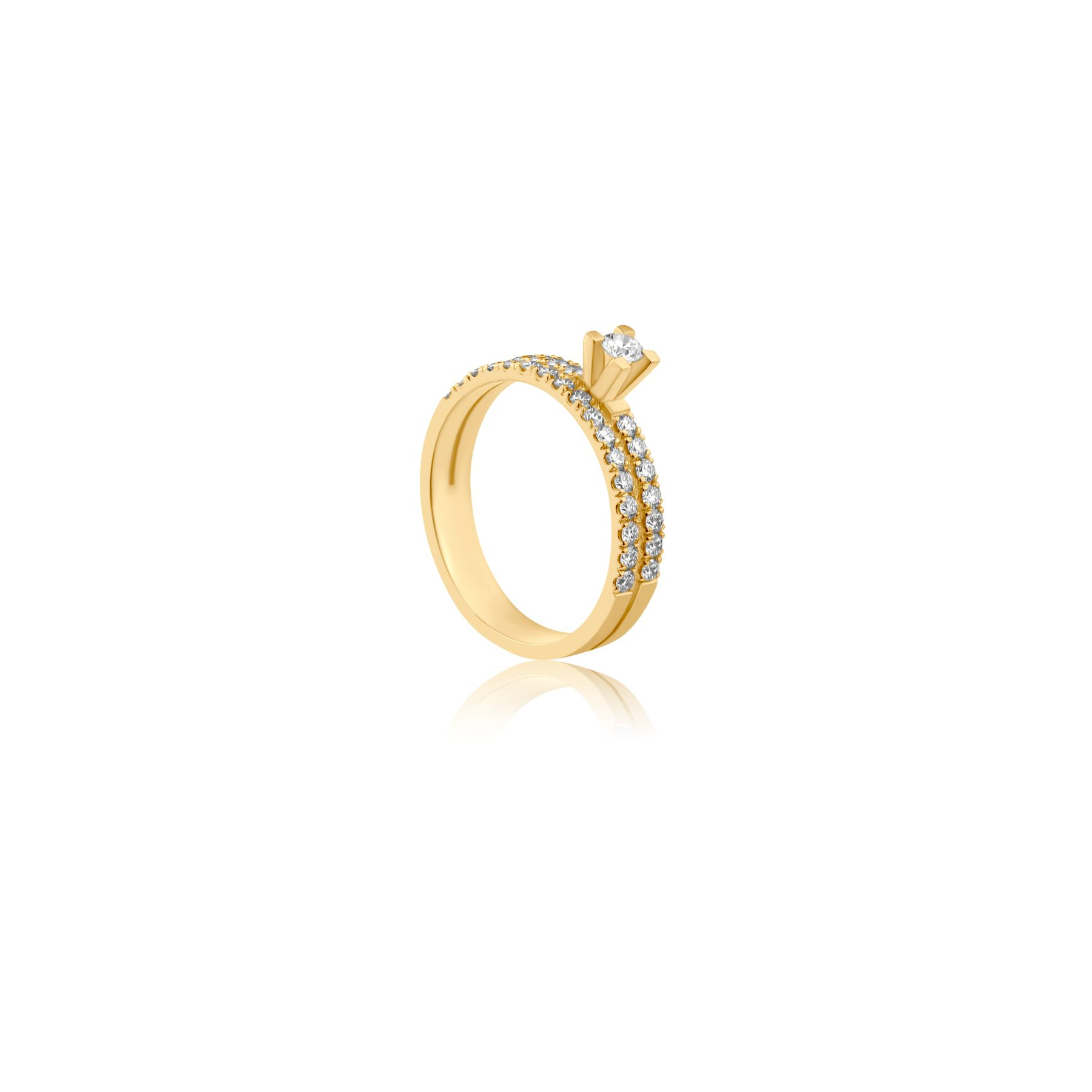 Solitaire & alliance en Or jaune 750/1000, sertie de diamants taille brillant pour 0,54 ct.