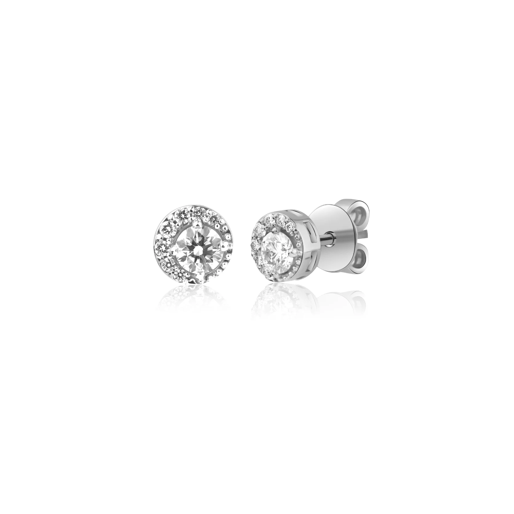 Puces d'oreilles marguerite en Or gris 750/1000, serties chacune d'un diamant central taille brillant de 0,25 ct, et de petits diamants taille brillant en entourage pour un total de 0,66 ct. Diamètre du motif 6,50 mm.