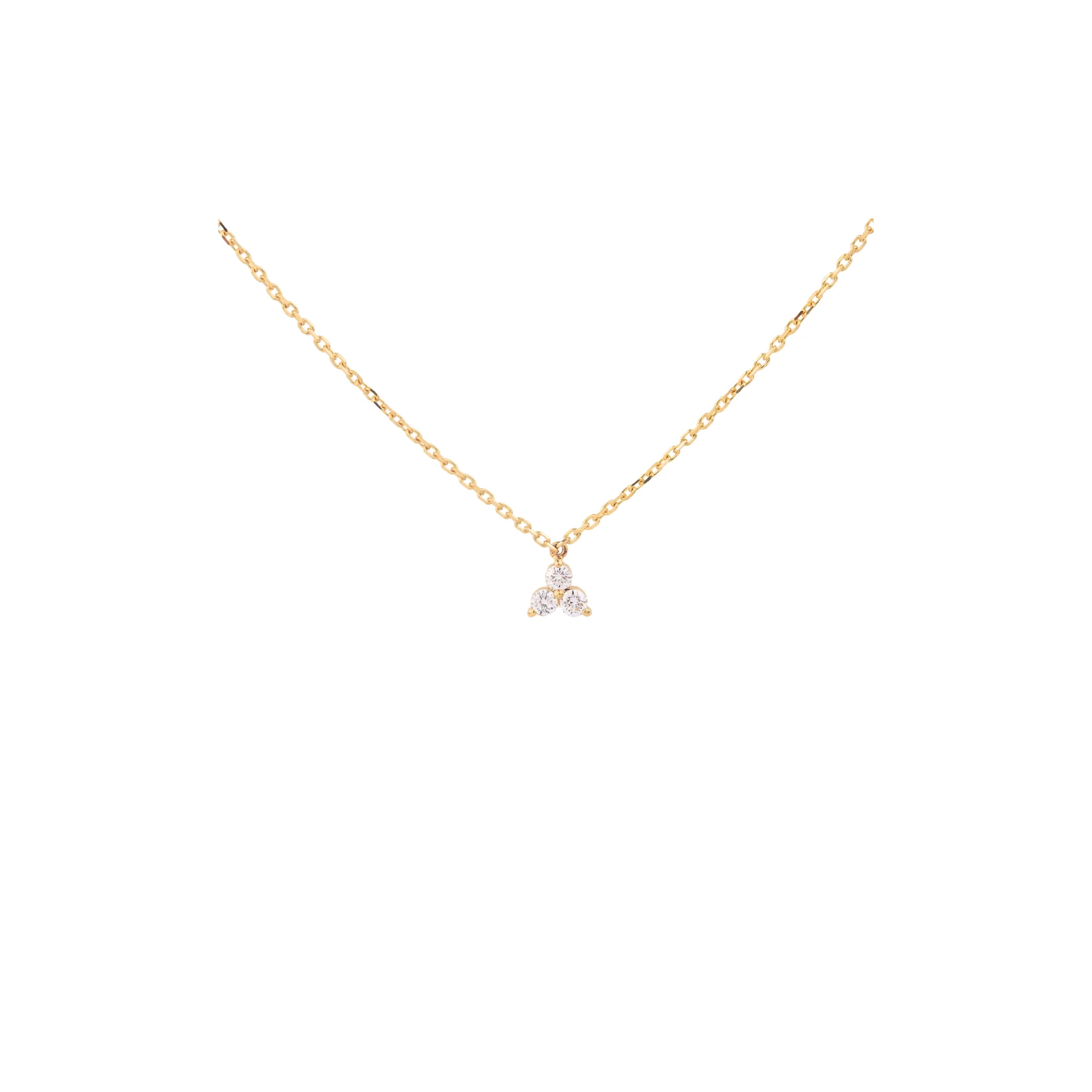 Collier trèfle en Or jaune 750/1000, serti de 3 diamants taille brillant pour 0,12 ct. Longueur de la chaîne 430 - 450 mm.