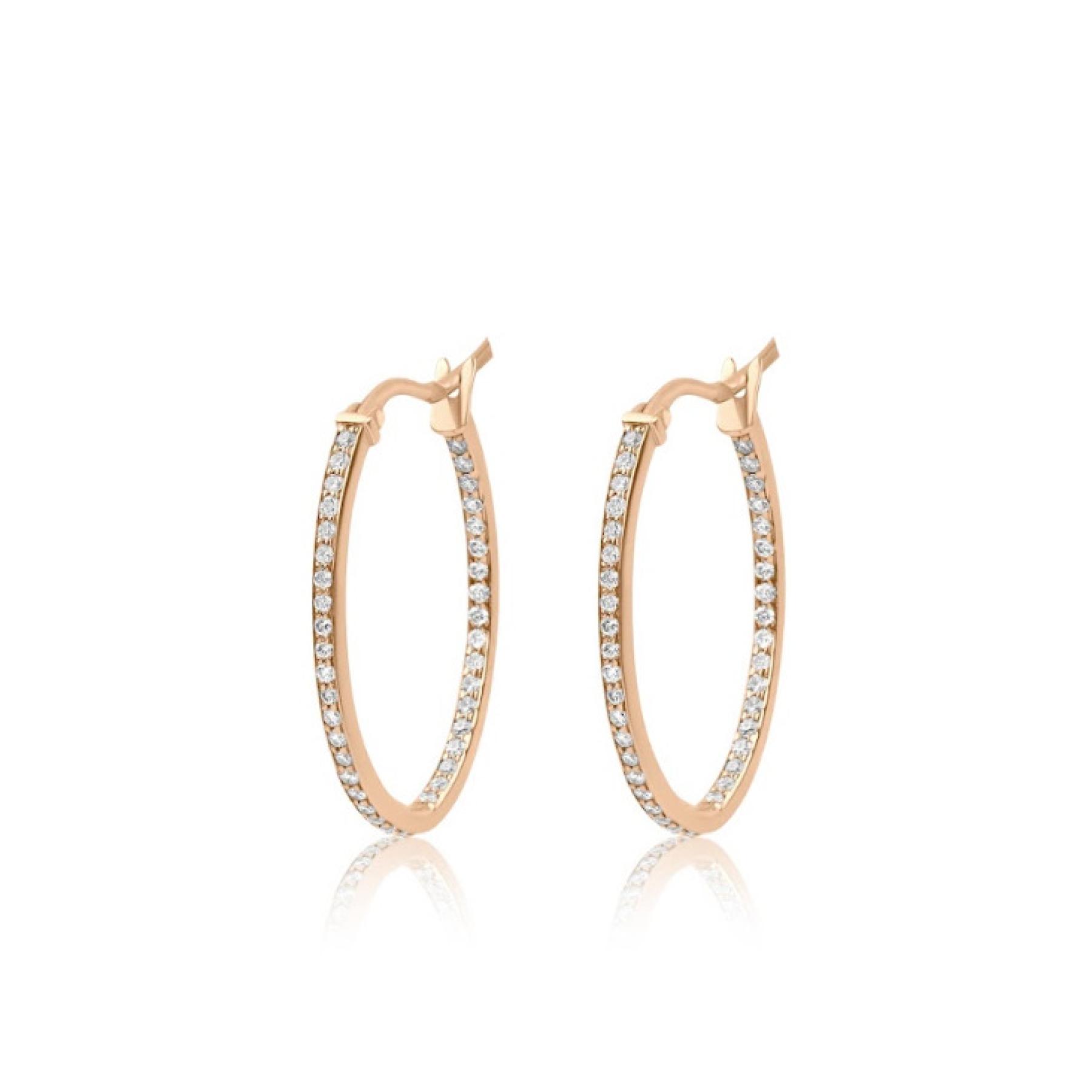 FEMMECréoles en Or rose 750/1000, serties de diamants taille brillant pour 0,78 ct. Dimensions 23 x 18 mm.