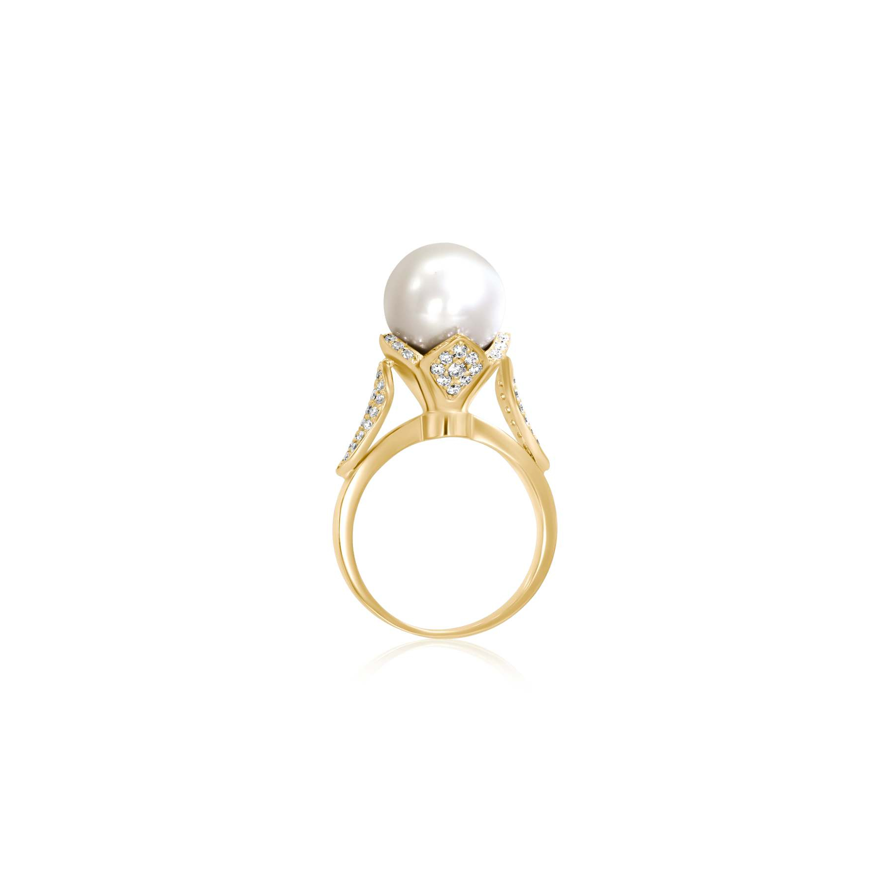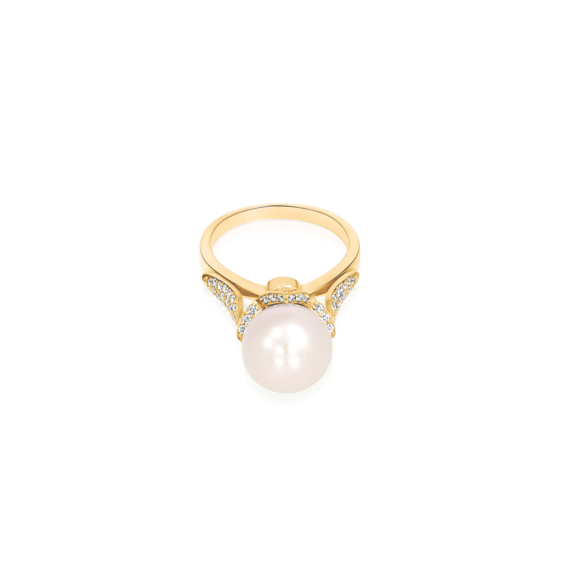 Cette bague en or jaune est sertie de diamants taille brillant pour un total de 0,78 carat, répartis avec finesse sur les pétales de la monture. Au centre de cette composition florale éclatante, une perle de culture d’eau douce de 10,5 mm vient compléter la création. Sa teinte douce et nacrée apporte contraste et équilibre à la brillance des diamants.