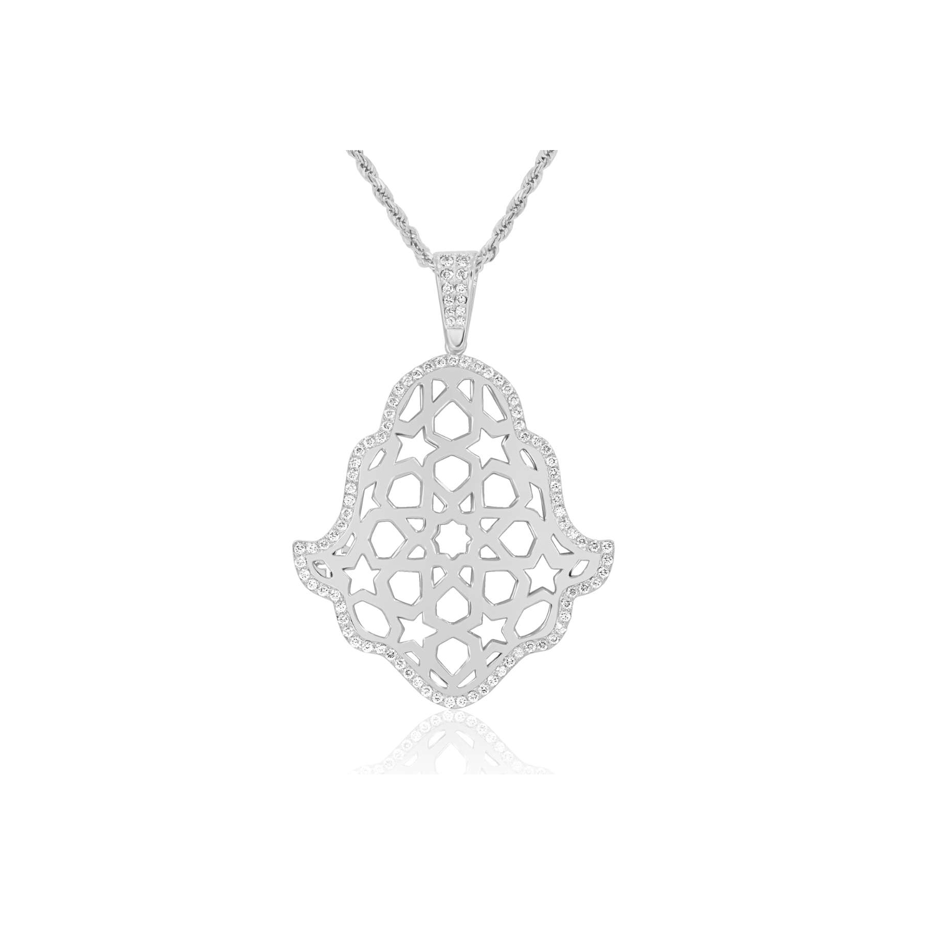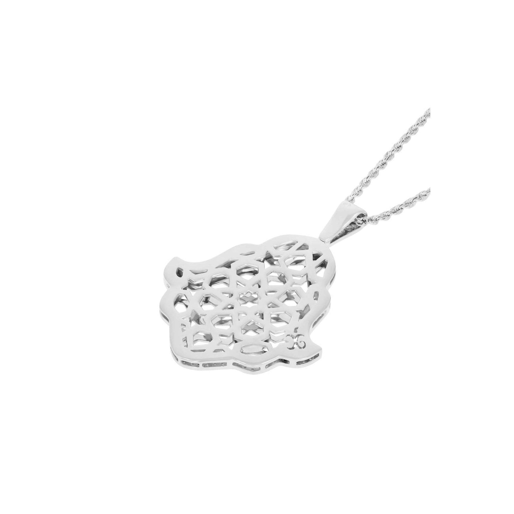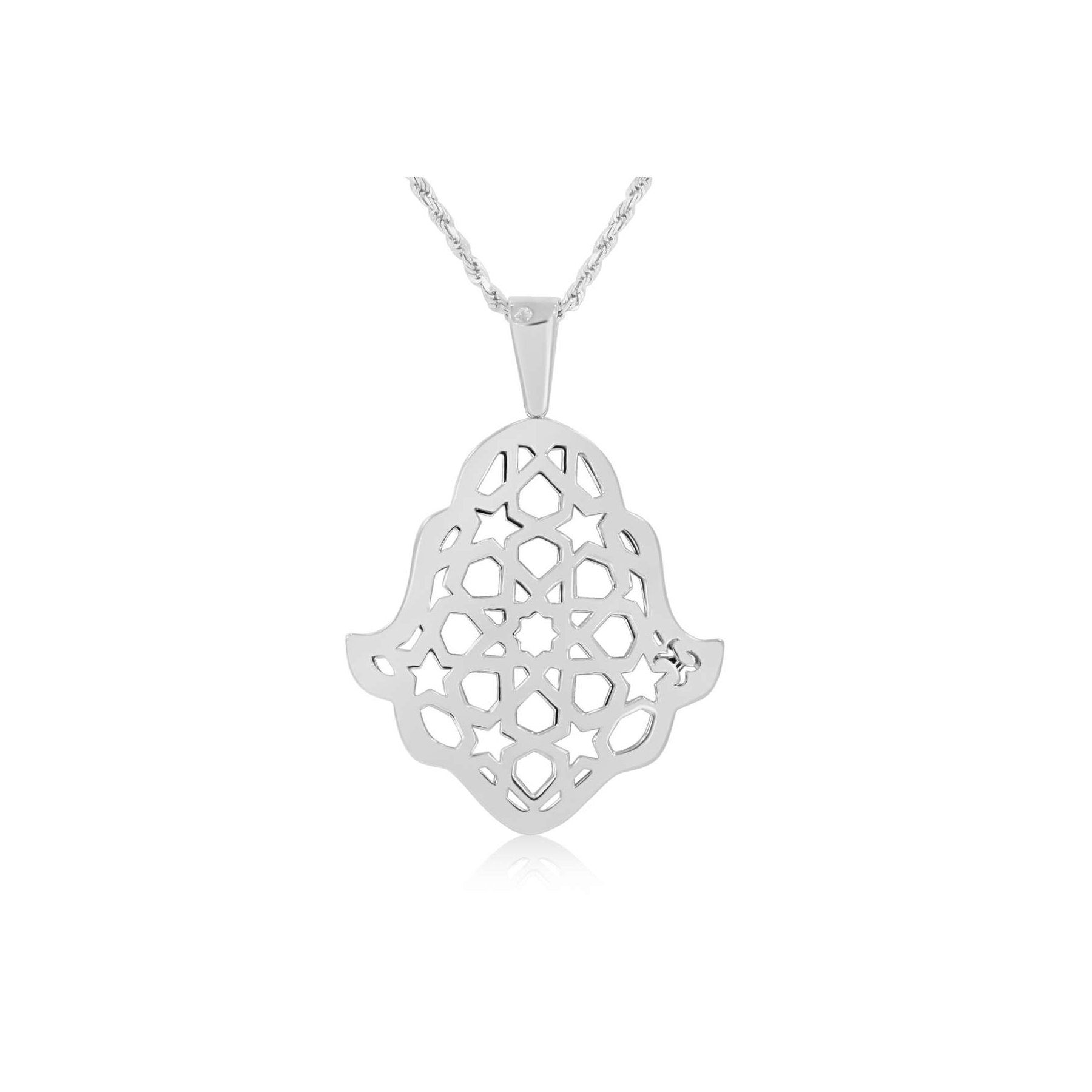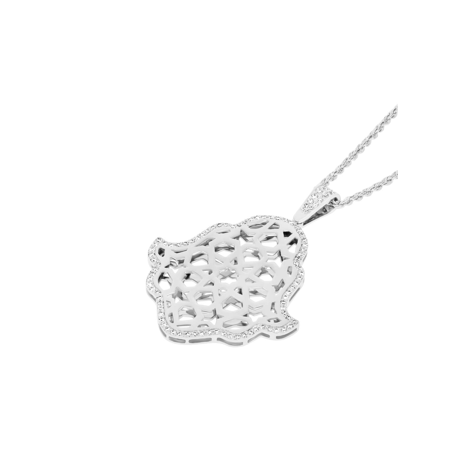Le Pendentif Khmissa réversible Excellence Or est un bijou d’exception qui allie symbolique forte et raffinement. Réalisé en or gris 750/1000, il incarne une vision moderne de la célèbre main protectrice. Ce pendentif en or gris se distingue par son caractère réversible, permettant deux styles en un seul bijou, à adapter selon l’envie ou l’occasion.
