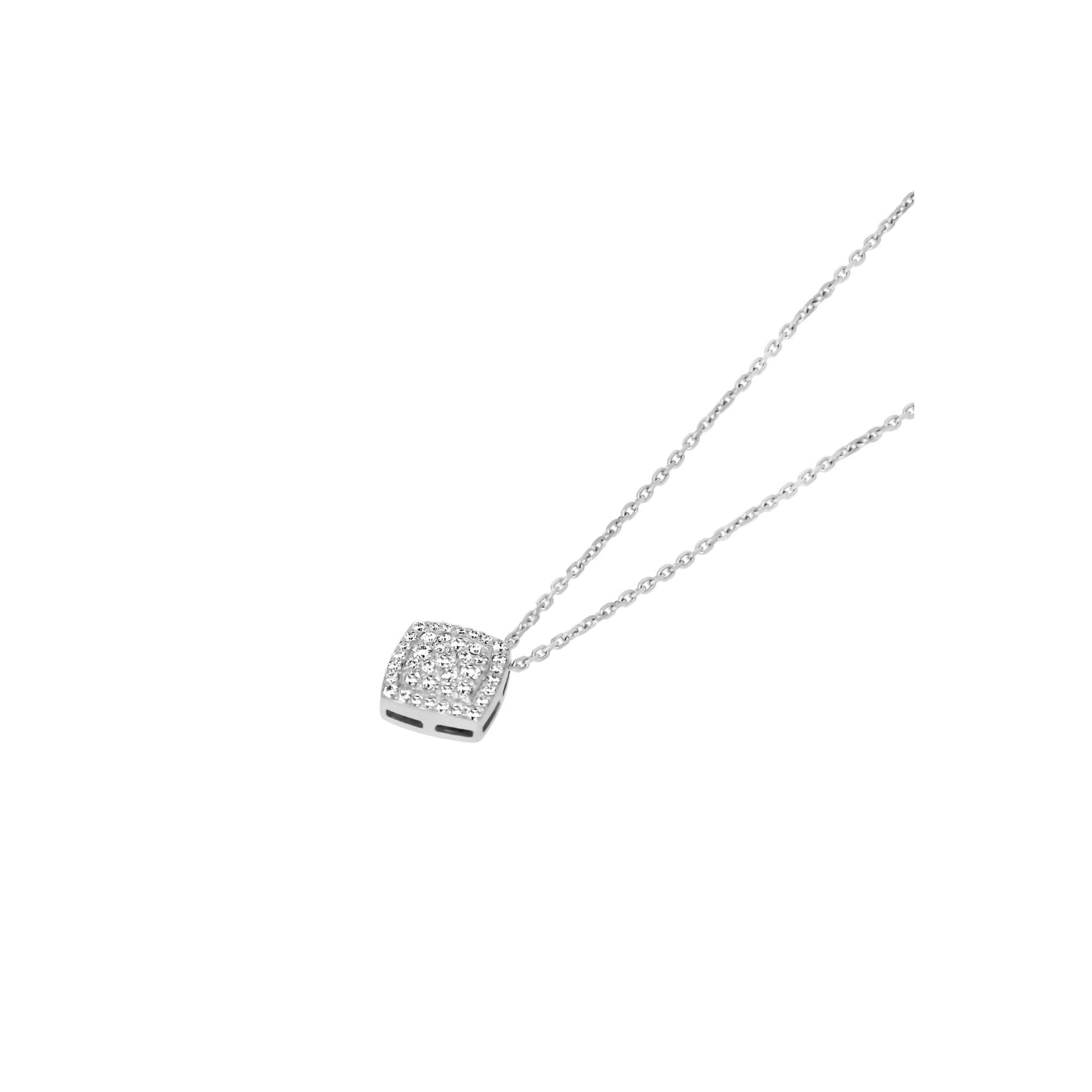 Le collier pendentif carré Excellence Or gris 750/1000 est un bijou discret et élégant qui attire le regard par sa simplicité raffinée. Son pendentif carré de 8,4 mm de diamètre est délicatement serti neige de diamants taille brillant pour un total de 0,43 carat, offrant une brillance subtile et régulière qui capte parfaitement la lumière.