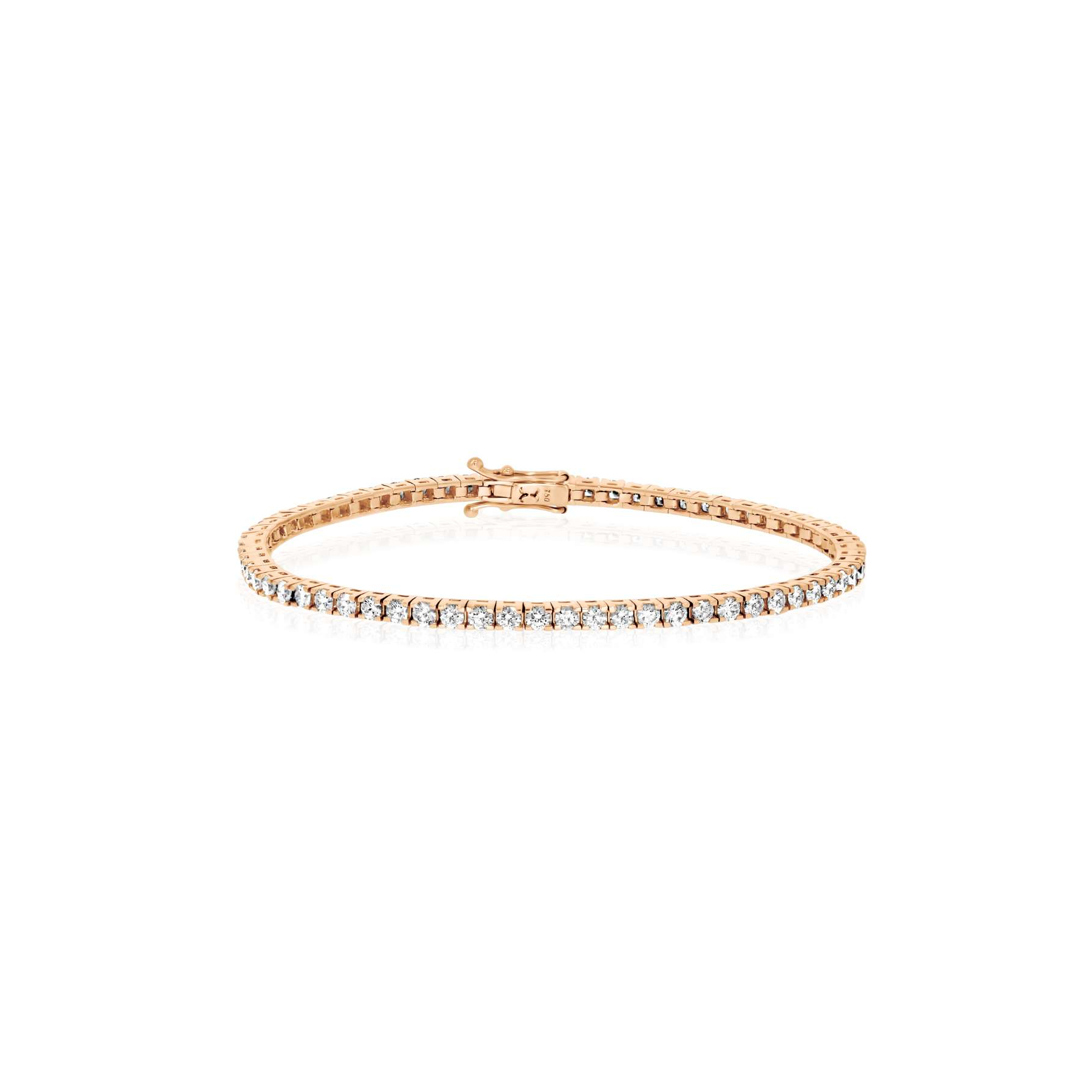 La rivière en diamants est un classique intemporel, apprécié pour sa simplicité et sa beauté éclatante. Cette pièce signe l’excellence du travail artisanal et la précision du sertissage. Le bracelet en or rose, associé aux diamants brillants, révèle toute la féminité et la délicatesse de ce bijou.