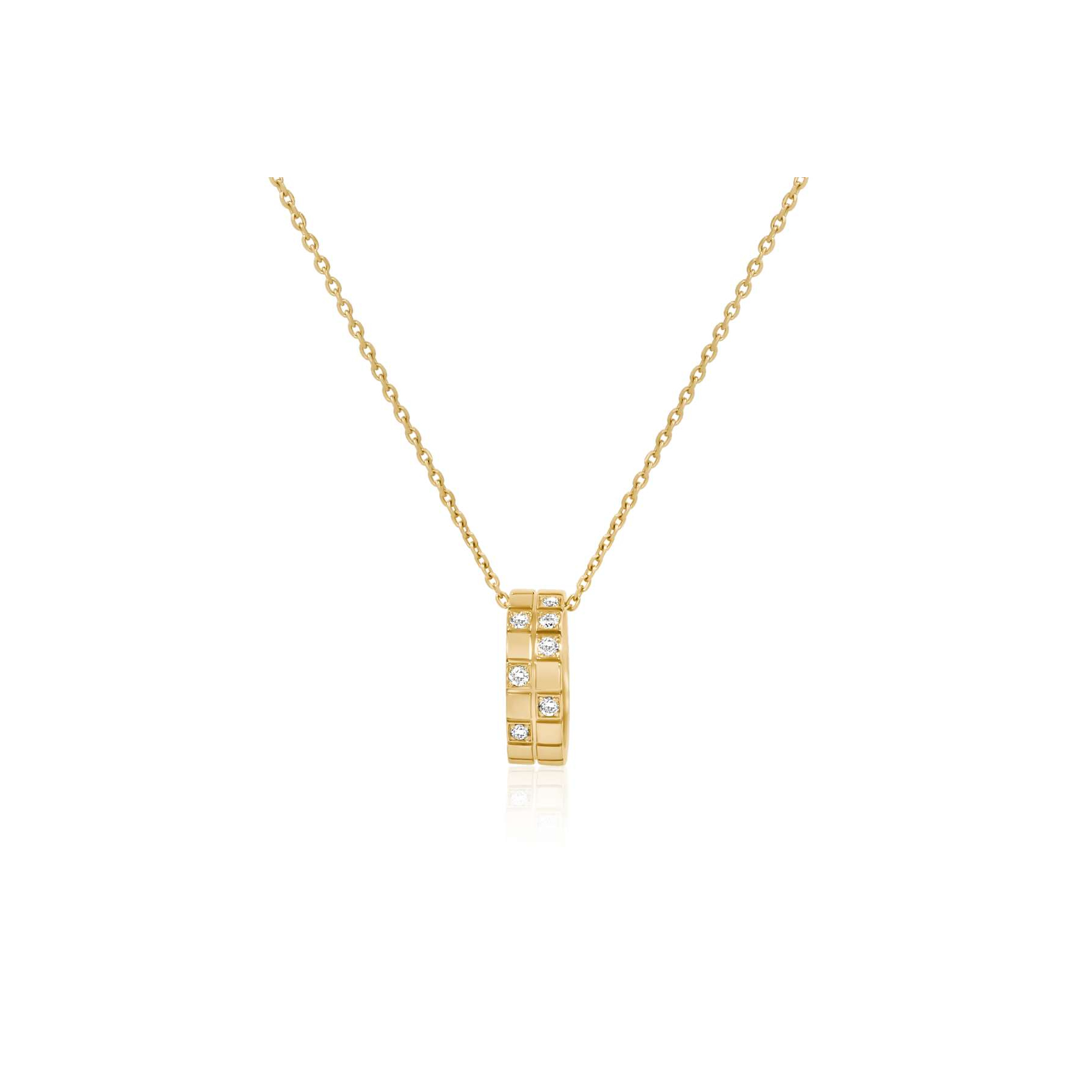 Ce collier avec diamants séduit par la pureté de ses lignes et par la brillance naturelle de ses matériaux. Chaque diamant est soigneusement sélectionné pour offrir un éclat optimal, tout en mettant en valeur la chaleur douce de l’or jaune 750/1000.