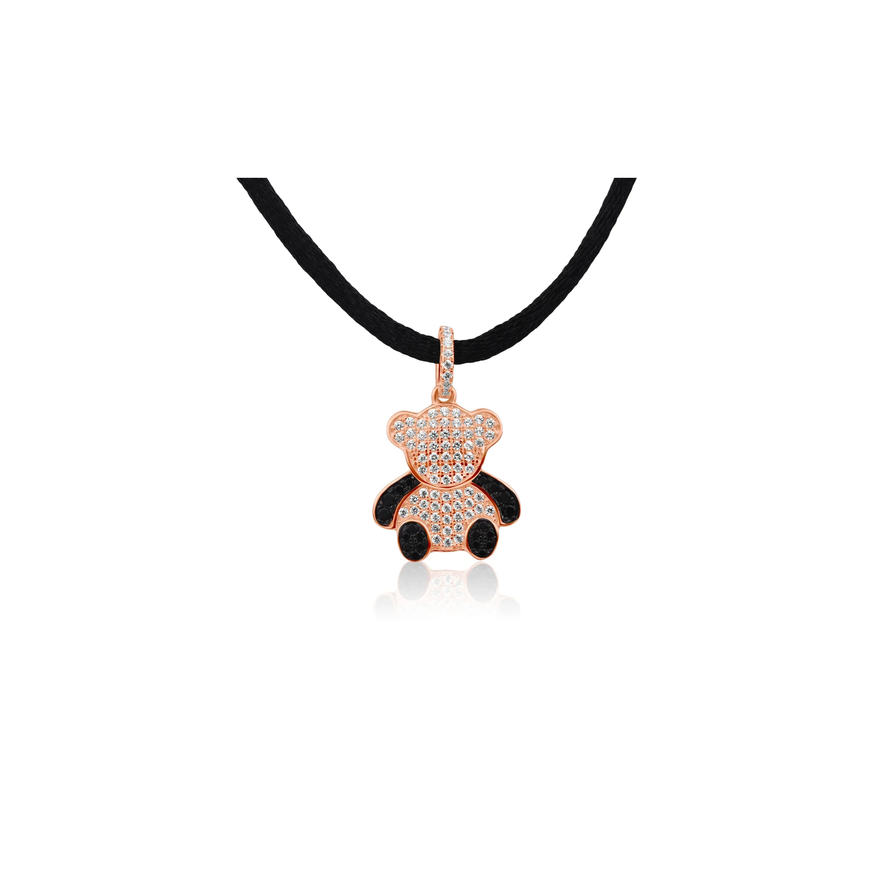 Pendentif nounours en argent 925 rose gold, serti de zirconiums , noir. Hauteur du pendentif 25 mm.