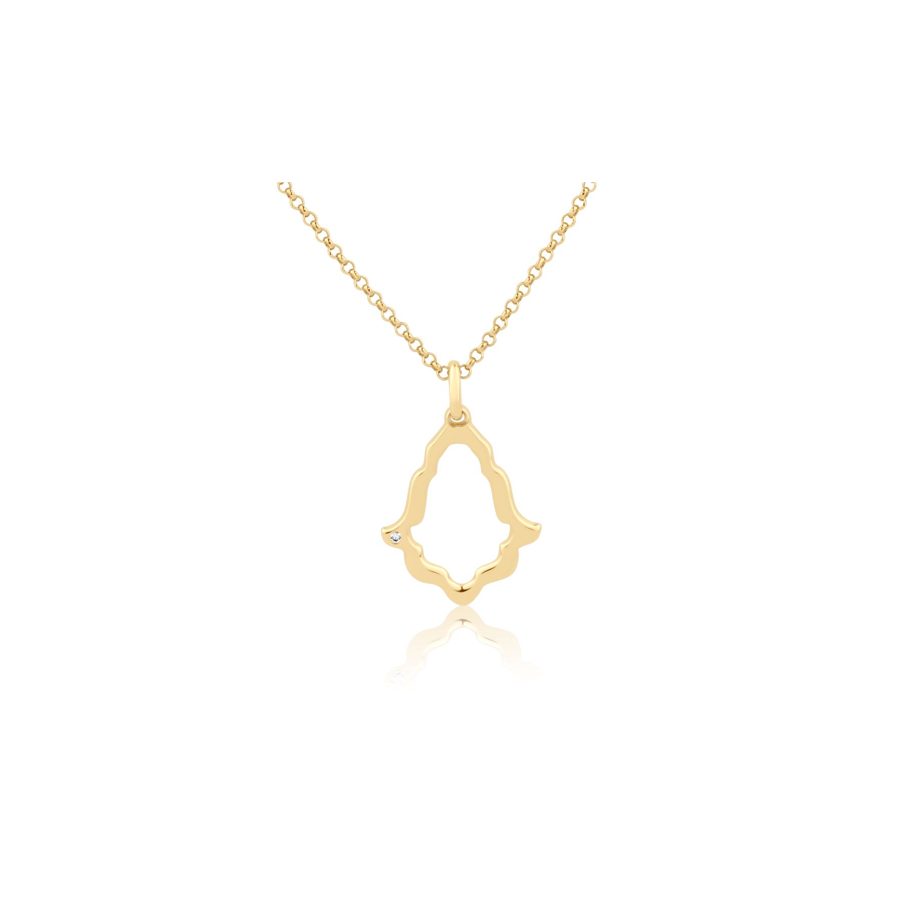 UnisexePendentif khmissa ajourée en plaqué Or 18K 3Mic, serti d'un zirconium. Dimensions 35 x 22 mm.